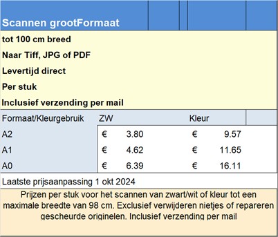 Onze scanner kan tot 100 cm breed scannen, ideaal om uw archief te digitaliseren.